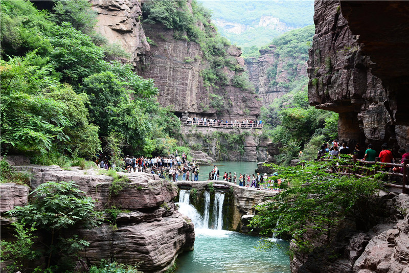 云台山,是世界地质公园、国家AAAAA级旅游景区、国家级风景名胜区,位于河南省焦作市修武县和山西省晋城市陵川县交界处, 景区面积280平方公里,含红石峡、潭瀑峡、泉瀑峡、青龙峡、峰林峡、子房湖、茱萸峰、猕猴谷、叠彩洞、百家岩等主要景点。