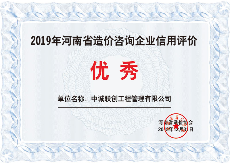 造价协会评价证书