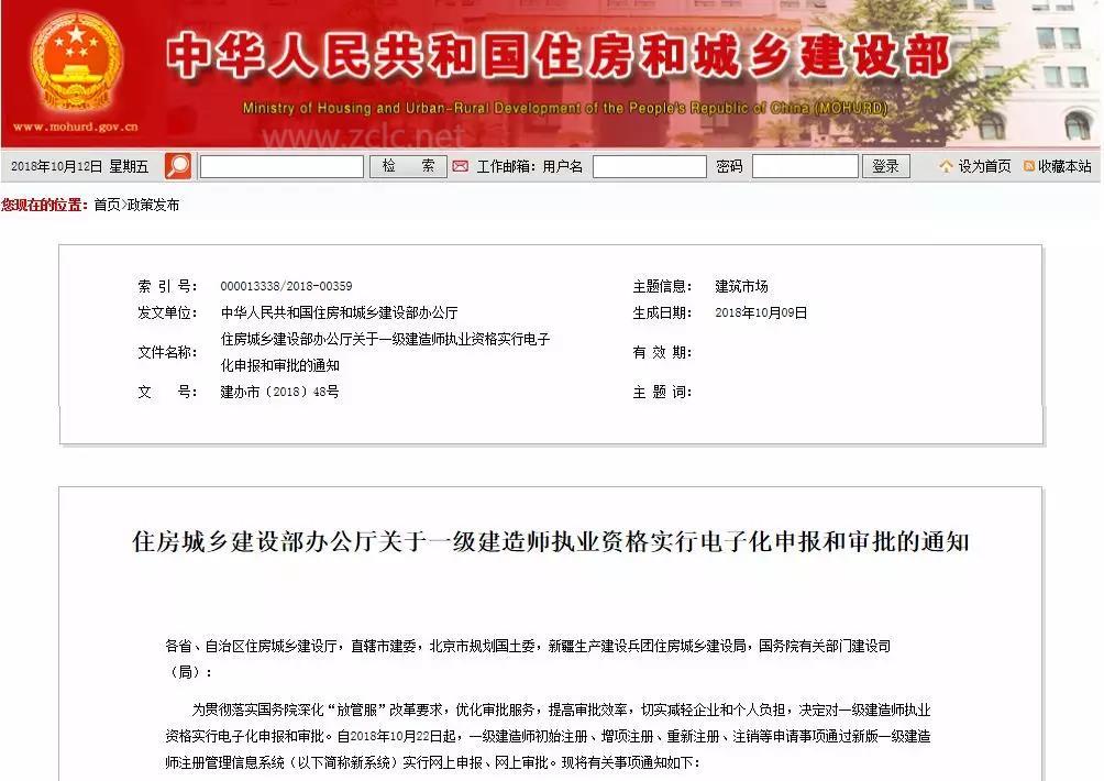 11日,住建部官网公布《关于一级建造师执业资格实行电子化申报和审批的通知》(以下称《通知》)。